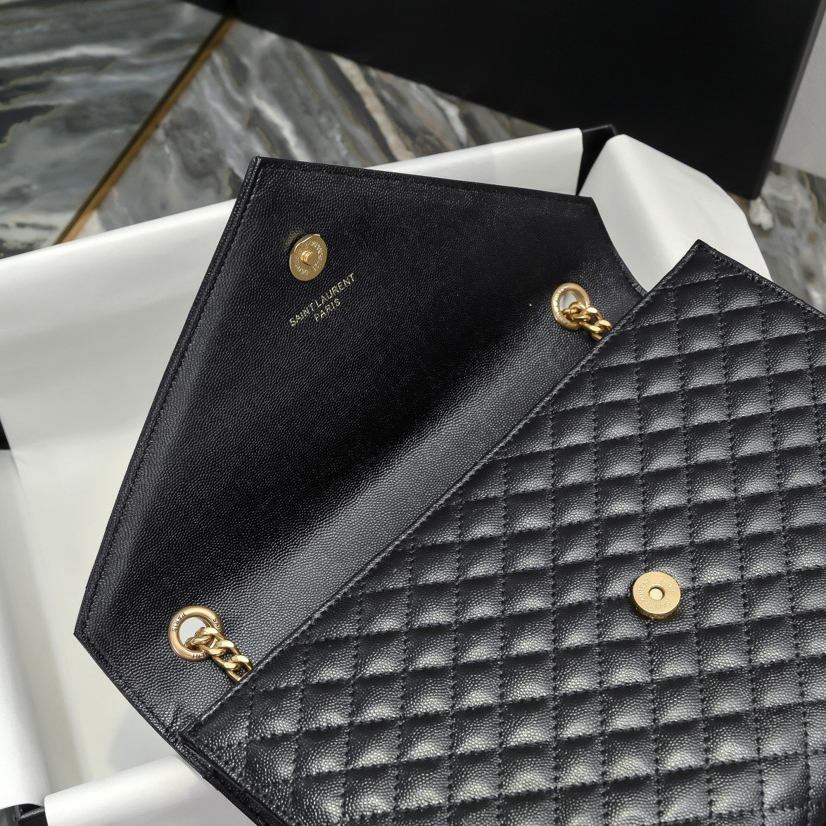 Grain embossed quilted leather envelope bag