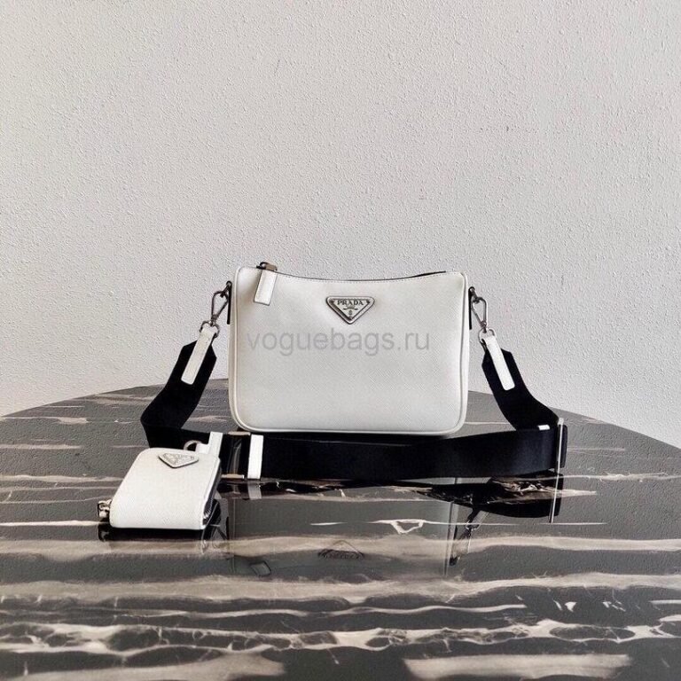 Replica Prada 2VH113 Saffiano leather shoulder Bag in White